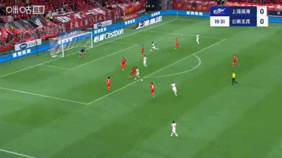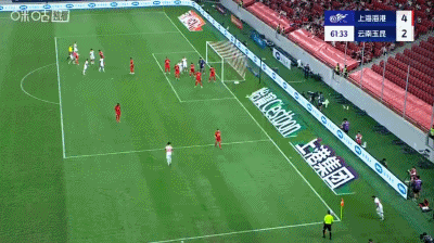 第37分钟,扳平比分,侯永永助攻,奥斯卡头球得分,云南1-1