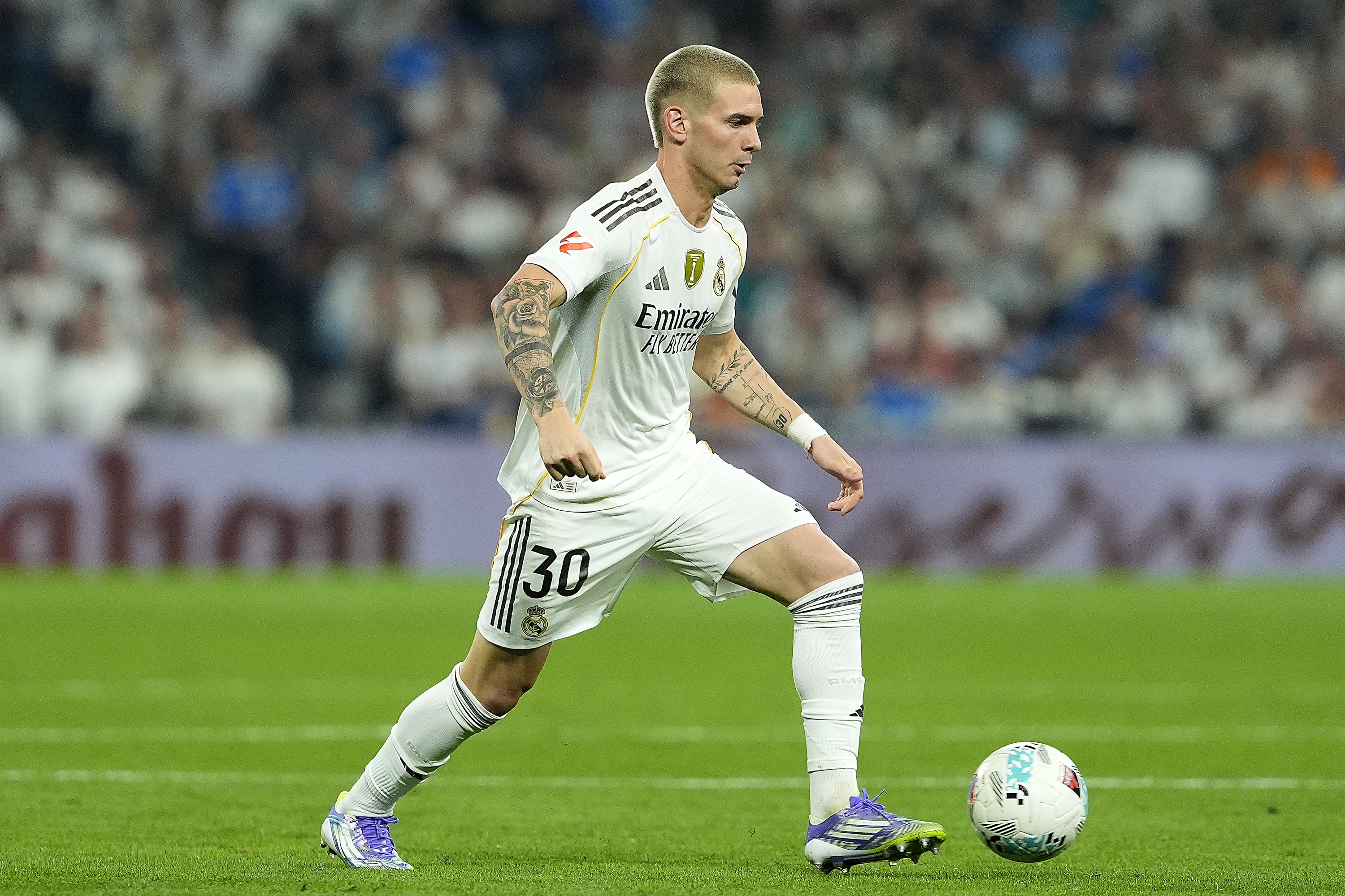 对阵奥萨苏纳(1-0)一役仅是开端,伯纳乌现场早已沸腾。当他身着30号球衣站在场边准备登场时,全场高呼"弗兰科,弗兰科..."的场面瞬间引爆网络,该款球衣目前已在官方商店售罄。